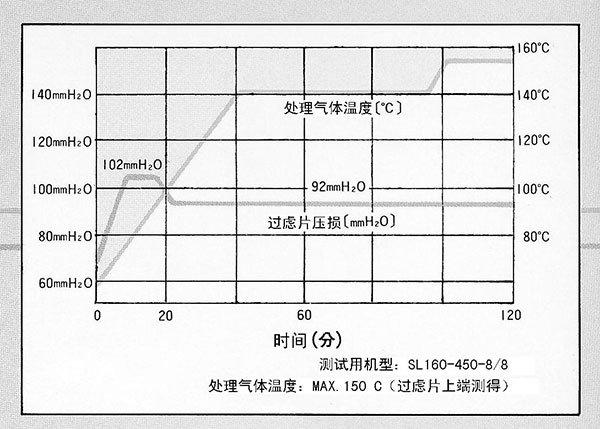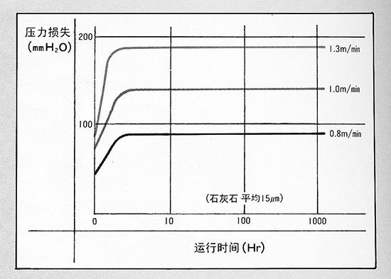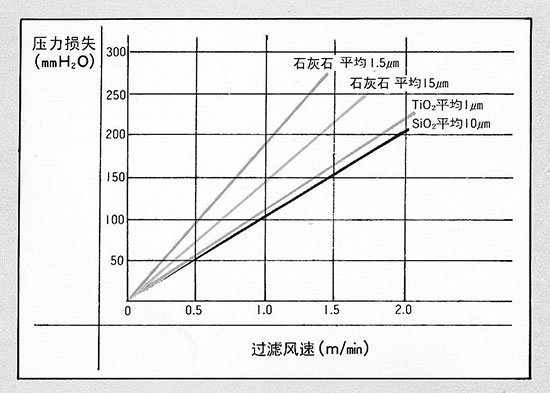 不同粒徑粉體其過濾風速及溫度變化同阻力損失的關系(見表三、表四)。