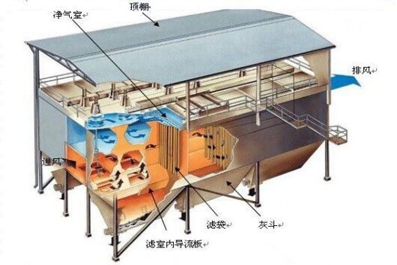 濾袋、籠骨和花板-----濾袋和籠骨組成了除塵器的濾灰系統(tǒng);花板用于支撐濾袋組件和分隔過濾室(含塵段)及凈氣室,并作為除塵器濾袋組件的檢修平臺;濾袋組件從花板裝入
