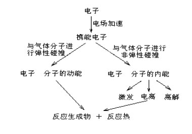 從以上反應過程可以看出,電子先從電場獲得能量,通過激發(fā)或電離將能量轉(zhuǎn)移到污染物分子中去,那些獲得能量的污染物分子被激發(fā),同時有部分分子被電離,從而成為活性基團。然后這些活性基團與氧氣、活性基團與活性基團之間相互碰撞后生成穩(wěn)定產(chǎn)物和熱。